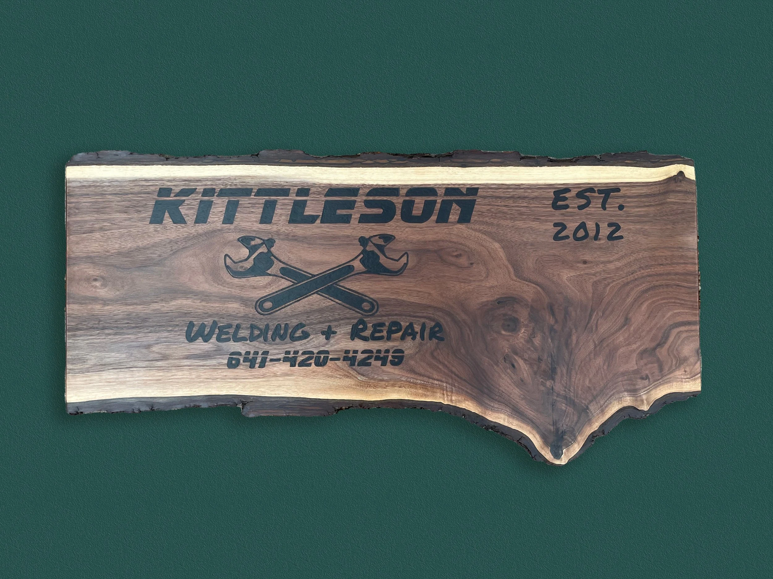 A Christmas gift for a friend. wood-burned on live-edge walnut.