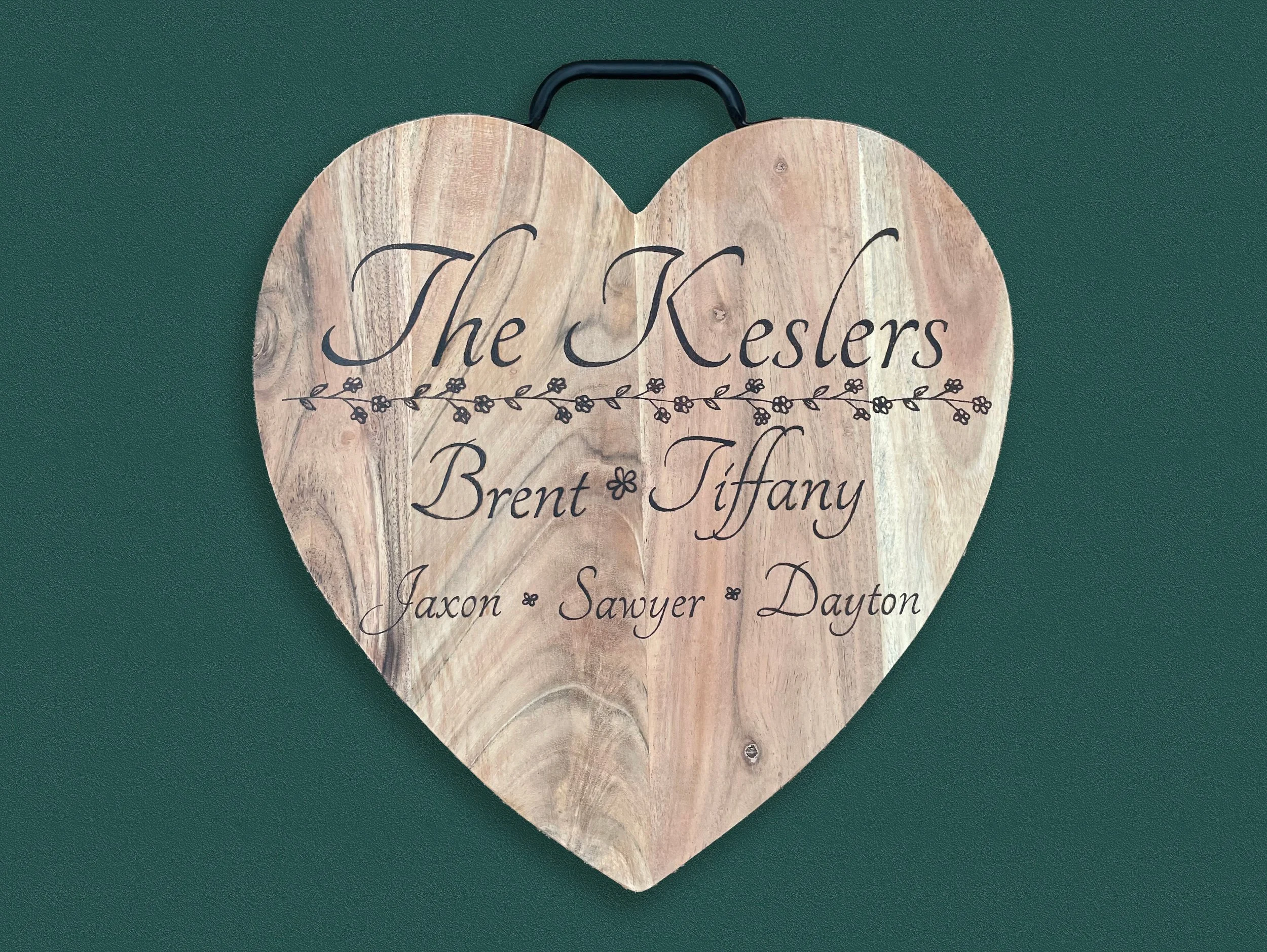 Customized wood-burned or screen-printed goods.